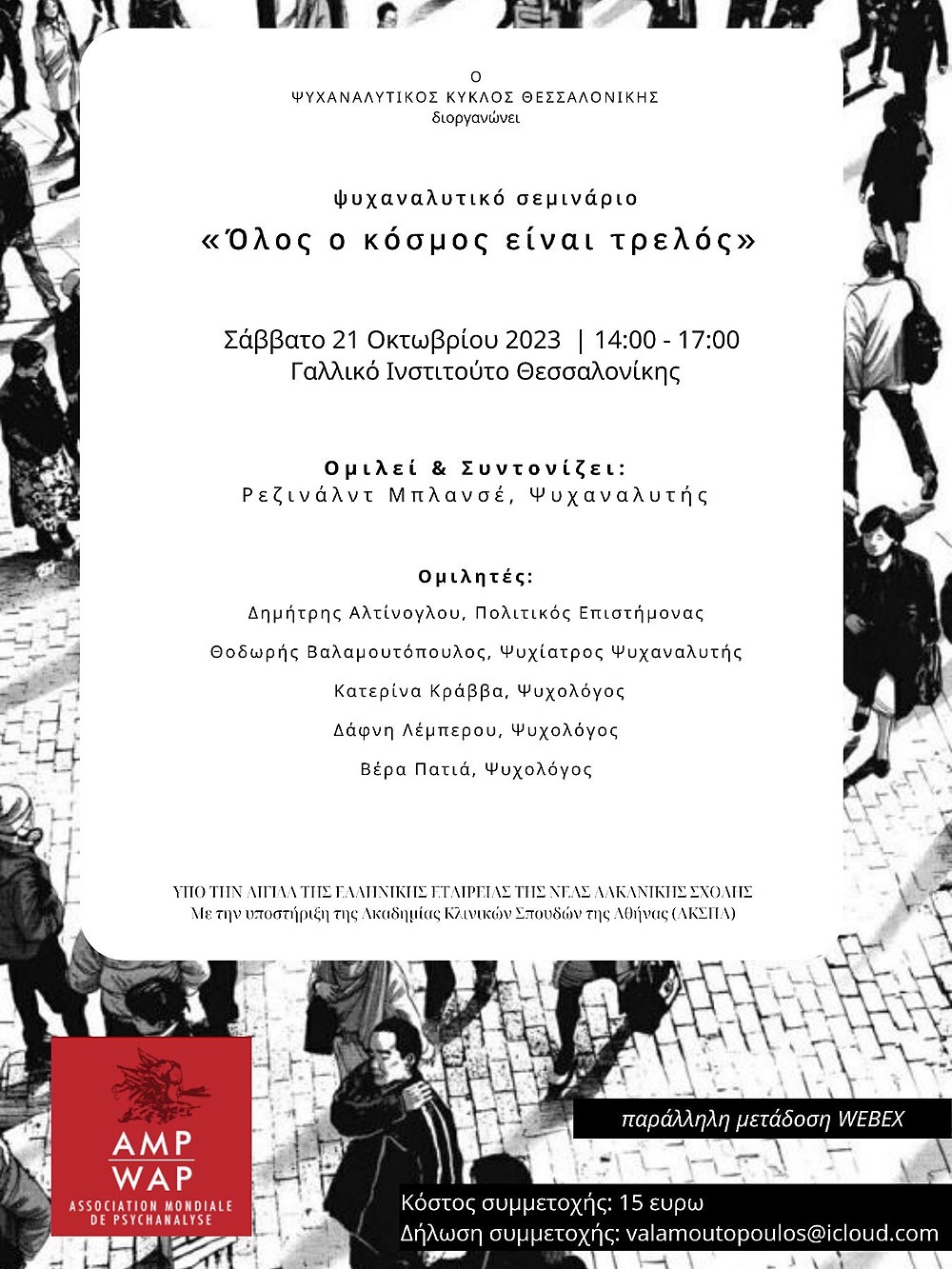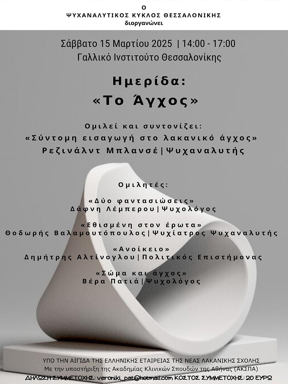 Συμμετέχει στις εκδηλώσεις του Σινεμά και Ψυχανάλυση στη Θεσσαλονίκη ως μέλος του Ψυχαναλυτικού Κύκλου Θεσσαλονίκης.